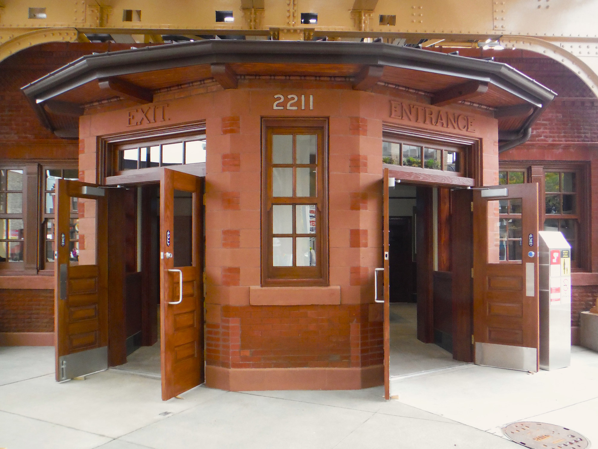 At the station building, the project included brick and terra cotta masonry restoration (including cleaning, repointing, and selective replacement in-kind), in-kind wood window replacement, in-kind door replacement with accessibility upgrades, roof replacement, interior woodwork and cement plaster restoration, lighting upgrades, modern turnstiles, and finish upgrades throughout staff areas. At track level, the project included refinishing of the original railings, replication of the original railings where not present, modification of existing light fixtures for LED functionality and replication of historic light fixtures where not present, and new wood platform decking and warning surface striping was provided.