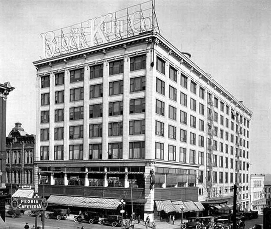 The Schipper and Block department store building opened in downton Peoria in 1905 as the city’s first steel-framed structure. The building contributes to the Downtown Peoria Historic District which is listed in the National Register of Historic Places. Today the building is rehabilitated and adaptively reused as the administrative offices for OSF HealthCare.