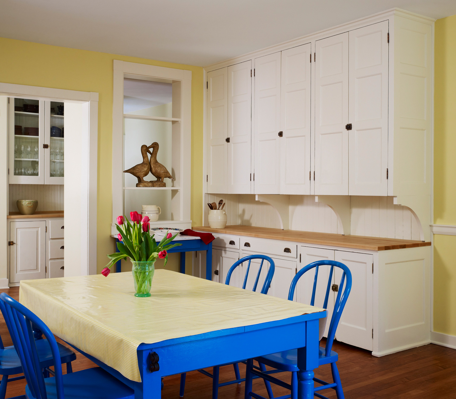 The structure of the building was stabilized and all new structural work was meticulously concealed. Deteriorated portions of the masonry walls were stabilized, deconstructed, and rebuilt. Sagging door and window lintels were reinforced and stabilized with new glue lam beams. The porches off of the kitchen and living room were entirely rebuilt in-kind, and the slate roof was repaired. The stucco exteriors were patched and a new finish coat was applied. All exterior trim was either repaired or replaced in-kind. The existing wood windows were restored and new, operable wood storm windows and screens were designed and provided. All new insulation, plumbing, electrical, and heating/cooling (including a six-loop geothermal field) was provided.